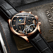 海琴手表男士机械表全自动防水镂空潮正品真皮带时尚2018新款男表